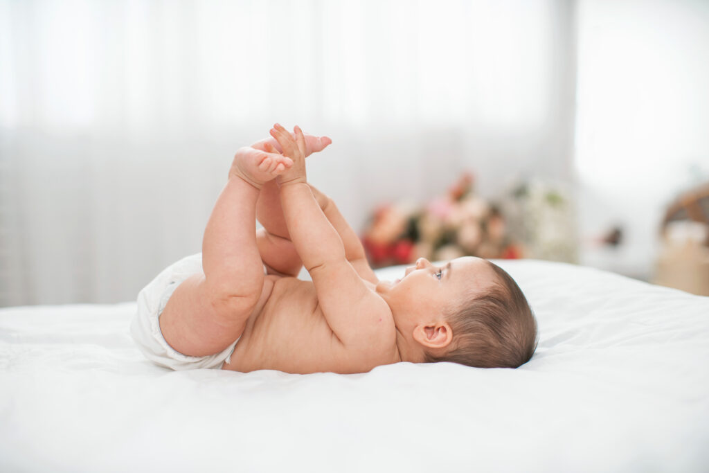 Los bebés con una fuerte extensión desbalanceada de tronco también tienen dificultades para estabilizar su tronco y cuerpo.